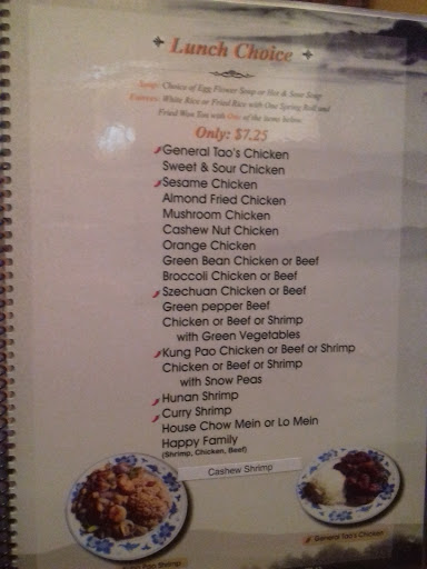 Chinese food as youd expect it. Even though Im rarely blown away by the food here, I keep going back because its consistently good, fast, and generally large portions. Once you visit often enough and during off peak hours, the staff does learn your name and preferences. On my last visit my girlfriend was not only complimented, but also given a paper rose because they know me as being a very nice guy. The little extras and the consistency of their food earn them 5 stars from me. Keep it up!
