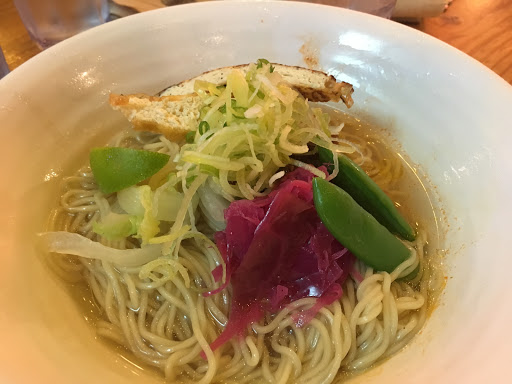 Vegan Ramen: delicious broth, perfectly cooked noodles and veggies. Healthy serving for lunch. Excellent, speedy and pleasant service.
