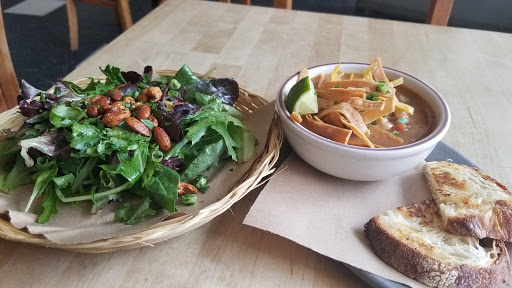 One of my favorite Portland restaurants. Great sandwiches with regular specials--but when theyre gone, theyre gone, so get on it. The breakfast burrito and steak sandwich are great, quick breakfast options and they serve coffee that is, mercifully, not Stumptown. Not cheap, but worth the money 100%. (Also the peanut butter rice crispie treats are amazing.)