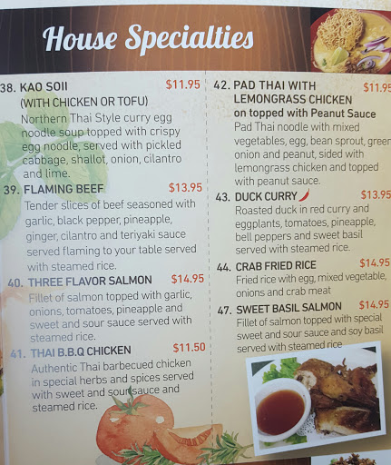 Ive been a long time, loyal customer for at least 7 years and I can say the service & quality is declining. I ordered for take out & forgot to say no tomato (Im allergic), probably bc I order that dish all the time. When I called back they were very understanding & offered to make another dish free of charge. Great, thank you, happy customer! I drove back over & picked up my "no tomato" dish. I was starving at this point & started to dig in right when I got home, only to find there was still tomatoes in it, even though I made a big point about re-making it due to an allergy. I called them back & they said they would remake it, again. I drove back over ( this is about 1.5hrs later) to pick it up & they tried to charge me for this 3rd dish. Im disappointed that they would mess up the order & then ask me to pay for it. Im just hoping that I dont get sick from eating the food they told me was tomato free. Theres plenty of other good Thai around with better service.