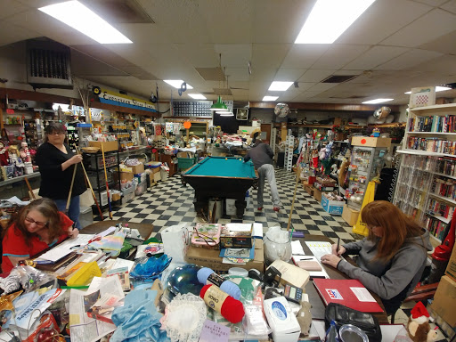 This restaurant/store is the strangest shop in town and totally worth a drop-in. You just never know what kinds of items they will be selling in the back of the restaurant (Avon products, yarn, patterns, Halloween costumes, Easter grass, etc.). Initially attracted by the classic 50s window dressings, we dropped in for breakfast on a Saturday. The food was just okay, coffee terrible, and the service was unfriendly and slow even though clearly the cook was working hard on the small grill. I really wanted to like it more but alas, could not. Ill be back but probably for a random item I might only find there!