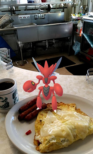 The service was horrible. We had to get up and get our own condiments, steal unused silverware from other tables, and ask for coffee after ordering. We never got a water refill. We ordered strawberries on our pancakes, but they were forgotten and never brought, even once the mistake was recognized. The food was okay, but we will not be back. The place was filthy too. The bathroom was filled with flies.