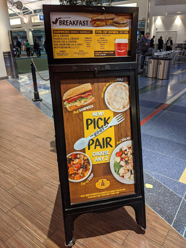 Poor quality product and service at airport. Limited selection of breads. Either white or whole wheat. Asked for not toasted. Not allowed. Toasted bread comes out of oven all black around edges with cheese almost carmalized. Asked for lettuce, mayo, and avacado only with chicken salad. Later found tomato inside which I am allergic to. Also found avacado peel inside. Chicken salad was bland tasting mostly like mayo. Workers were chatting constantly about private life matters. Asked for a bag and clerk literally threw it at me and I had to bag my own stuff. If at the airport, go elsewhere for a sandwich. Even a Subway would be better than this chain !!