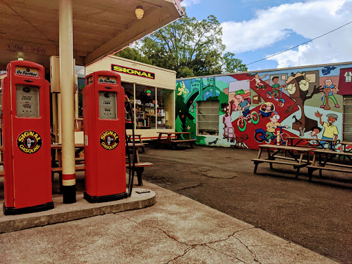 Interesting, tasty pizza options in an old gas station building. Basically all the seating is picnic benches outside, so come here on a nice day.