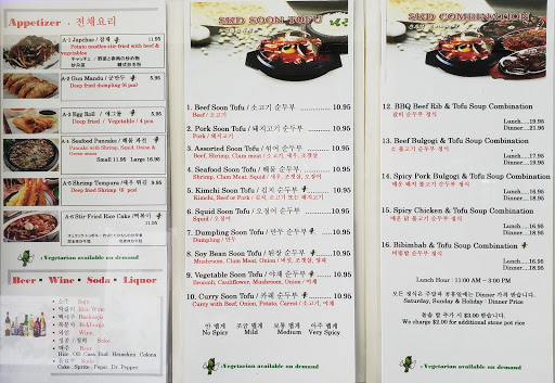 We tried the soy paste sundubu jjigae (soft tofu stew) and dolsot bibimbap. Both were quite decent but not remarkable. The banchan portions were underwhelming, though they did replenish them for free when we asked for more. There is a variety of sundubu jjigae options on the menu with various additions. Prices are reasonable and the combination meals are a good deal.