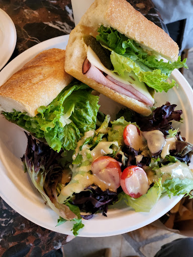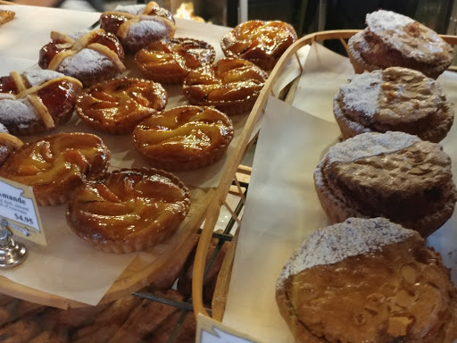 French-style breads & pastries are very good. A number of the selections have no real American equivalent. Sandwiches are less notable. I like the tart au citron. The crust is too hard to cut with a fork, but it responds quite well to human teeth. Dont try to be polite, just pick it up like a boss and bite in. The prep area is open, so you can watch the bakers as they work. A large-screen TV shows the Tour de France when its in progress. The single-user restrooms need a button entry code that the register staff will supply upon request. If you live in the neighborhood, this is a great, family-friendly place (if a little spendy.) Otherwise, be warned that parking in the area is *extremely* limited.