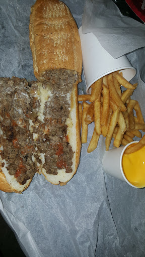 Tried their basic philly cheesesteak on Saturday night. I was a little surprised that the place was so barren but the food was really good. No one seemed to be sitting down to eat, everyone was taking their food to go so I didnt feel comfortable staying and eating there. There were plenty of bare bones tables and two tvs with a basketball game playing but it seemed weird to eat there. Very happy with the large cheesesteak. Good flavor, lots of meat, excellent bread. I was sorry I didnt order the fries and Id really like to have tried the hamburgers. Would eat here again in a heartbeat.