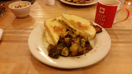 Heres the thing - dont come here if youre not prepared for a quirky & cheerful staff (if you come often enough, they will remember your name or at least try), potentially inconsistent (but not terrible) potato making (also may be due to their constant rotation of cooks), and long lines due to popularity (& ease of location). I love this place; Im a regular who basically gets the same thing every time: 1) Egg Sammich - this is where the inconsistent potato making happens 2) Coconut Oatmeal - sometimes its hard to find on the menu, but its there, and its delicious (O.K., sometimes gloppy like grandmas, but still tasty).