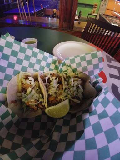 The location is actually right on the corner. They have a giant Jenga block set, pool, and other games for your amusement. There was a live DJ on Saturday night who I think picked songs based on his own music tastes and completely disregarded or perhaps misread the will of the people. Oh well. Very clean atmosphere both in regards to the building itself and the clientele. Cannot speak to the bathrooms as I did not utilize them. Mixed drinks were not so great, best to stick to beer here.