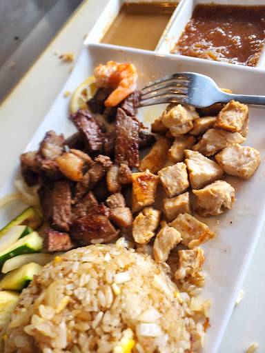 The food was great. The show was not. The guy was very nice and personable but Ive definitely seen better showmanship when it comes to these styles of restaurants. I thought this was about showing your knives and spat skills.. But overall it was a great experience so if your ok with someone just cooking a good meal in front of you, it should be a great experience. The flavors were spot on when it came to the filet. I had the new york but it was all I could do to keep myself from eating the wifes filet mignon. So tender and the ginger flavor was outstanding. The vegetables and chicken fried rice wrestling just ok...never had chicken fried rice (prefer pork) and the tempura veggies were pretty good but everything seemed to lack salt. But just a tad soy sauce and your good to go. For spending $140 with tip it was at least worth it when the whole family walks out stuffed and satisfied. Get some amazing skilled chefs and this place could be even better. Maybe we caught them on a bad night as it was Sunday and we were the only ones there till about when we left. Seemed earily quiet like we made a bad decision. Glad we didnt turn and run!