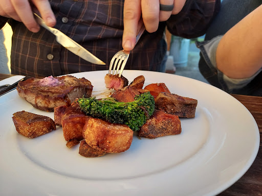 My husband and I have had 2 delicious meals here. The service was friendly and knowledgeable. We enjoyed wine with our meal. We shared a trout dish that was excellent and soup that was good. This place is small and feels very intimate. A nice place for a date.