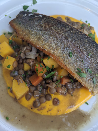 Wonderful dining experience last night with my food group. Every course was beautifully presented, delicious and creative. Beginning with a very tasty amuse-bouche and a warm, slightly salted roll, I had the grilled baby octopus salad in an embracing mild sauce with perfect small warmed white beans. A friend had a creamy soup that was to die for. Our entrees of smoked trout baked in parchment, beef Bourguignon, and a rib-eye were seasoned and cooked to perfection. The limited dessert menu was nonetheless also a real treat. The chocolate pot de creme was mild yet rich and not overwhelming. The pineapple tarte tatin with buttermilk ice cream was elegant and again, understated but very pleasing. This is a small place with the kitchen open to those seated in the back; as were we. There is a modest energy level but not crazy noisy. I enjoyed watching the work in the small but busy and well-organized kitchen. And our waiter was a superstar. Very attentive without being unctuous. We will all be going back - and soon - before this place becomes deservedly popular.