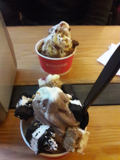 I have been to the wizbangbar several times in the past few months, and its always a great experience. They have amazing concrete, and dont be afraid to grab some ice cream at 10 p.m. at night, its an inside location and you will still have a great experience even had a late time.