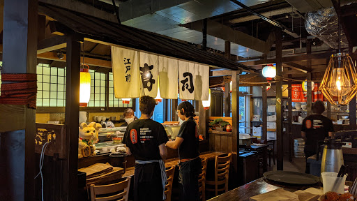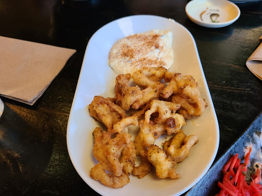I went there for lunch. My favorite dishes were skewers of okra and bacon-wrapped quail eggs. The eggs melted in my mouth. I also enjoyed the burdock salad, (a lot better than it sounds) and the "spicy" fried calamari, which was tender and delicious. I would go for the food alone, but ladies be sure to check out the pimped out bathroom. The toilet seat is heated, and the more adventurous-than-I can opt for some fancy water works. There was a beautiful basket of eucalyptus and dried flowers, a nice TV, and the sinks had mysterious jelly globes in them. It was easily the fanciest, best-smelling bathroom I have ever been to. Sorry guys, according to my husband, your version only has a fancy toilet, a TV, and a funny sign over the urinal.