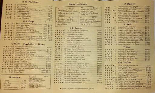 Really great food, and a large variety of items you dont see other places. I couldnt even tell it was vegan so I think meat eaters would be happy here too! The tea is also super good and we got some free on request. This was our second time and we had veggie chicken with cashews, sautéed string beans (spicy) and house fried rice. It was all really good but our favorite was the string beans! Last time we were here everybody had these. We will dream of them until next time! Extremely friendly service, and a ramp out front for disabled customers.