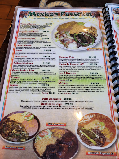Ordered tacos de pescado and they were ENORMOUS. They used probably 8 inch tortillas and there were 3 of them, each the size of my hand, plus the standard refried beans and rice. Inside was mildly spiced fish, iceberg lettuce, cheap pre-shredded yellow cheese (hardly even cheddar) and huge pale tomato slices. My bfs mother got spinach enchiladas, which came drowned in fake "cheese" sauce. Boyfriends mole was good. The menu at this place is outrageously huge and lends credence to the idea that the bigger the menu, the less thought that goes into the food. Typically generic American mexican. If youve been fortunate to have authentic tacos this place is a huge disappointment. Steer clear. The only good thing was how fast the food came out, under ten minutes... or maybe its bad. Just hope we dont get sick like another reviewer said keeps happening to them...