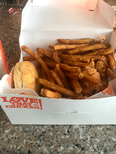 Food was great. Portions were just okay. A three piece chicken tender costs a heck of a lot for the variable but generally small size of each piece. Unlike other restaurants, they make no consideration for piece size when serving meals and if you get a small and crunchy piece of batter with little to no chicken inside you just lost the Popeyes lottery. Staff was overheard talking about scoring poorly on a recent inspection that assessed cleanliness. This is concerning for two reasons: First, they made it sound like they failed. Second, staff didnt have the foresight to predict that this would be something customers probably would be made uncomfortable by hearing..