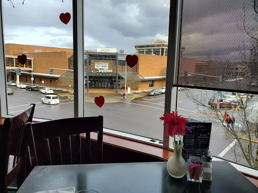 The first clue was the up escalator was not working inside the mall so we had to walk up the stationary stairs. There was no greeter at the desk and we waited behind at least three other couples and no greeter showed up. After about 10-15 minutes a waitress came out to show couples to tables. Once seated we were served promptly and courteously and the food was good. There was a view of the J C Penney store and the Salem Center. All the time we were there there was only two waitresses and no one bussing empty tables. We finally left and had to select a waitress to pay as there was still no greeter or cashier at the front desk. Maybe this was a Labor Day problem, but we wont be going back for seconds!