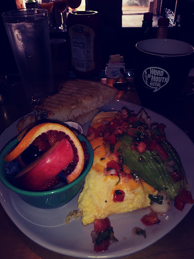 Word of Mouth, is more than just a great place to eat, it is an amazing experience, with both the service, and the decor. The restaurant is set inside a remodeled home, and it feels like you are coming home when you walk through the door. The walls are covered in fun paintings, coverings, and homey items, ranging from food, to dogs, to robots. The service has always been spot on, very attentive staff who know the menu inside and out, I have never been left wanting for refills on water, or offers of more syrups, jams or jellies. Staff is always friendly and fun, even when the place is extremely busy (which it almost always is) The food.... I could talk about the food for days, but a few of the main points would center around breakfast. The Chicken Fried Filet Mignon may seem like a waste of a perfectly good steak, but its melt in your mouth savor and mix of textures warms your heart and stomach, and fills both as well. The greatest item on the menu in my personal opinion, is the Incredible Flying Biscuit.. It is exactly as it sounds, a breakfast sandwich that no one can wrap their mouth or mind around. The perfect thing for those who love all things breakfast, with egg, chicken fried meat, bacon, gravy, cheese, and a whole lot of love. Big enough for two people to share, but I have never tried. The only downside of this wonderful place can be its wait times. Ranging from 30 mins to and hour and a half, often from open till close, this can be difficult for people looking for a quick bite. However, the staff has many ways of communicating for those who wish to wait. The main system is their ability to text you when your table is 15-20mins ready, so you can leave the Bistro, leave the area, even go home if it is close, and wait comfortably for the text to return. There is also a doughnut shop across the street, local and great, that has coffee and treats for a fun wait. I would say that this is a great place to visit for anyone visiting salem, or that has lived here forever, 10/10 every time I have gone. PS Their take-out is every bit as good as the food you get if you wait.