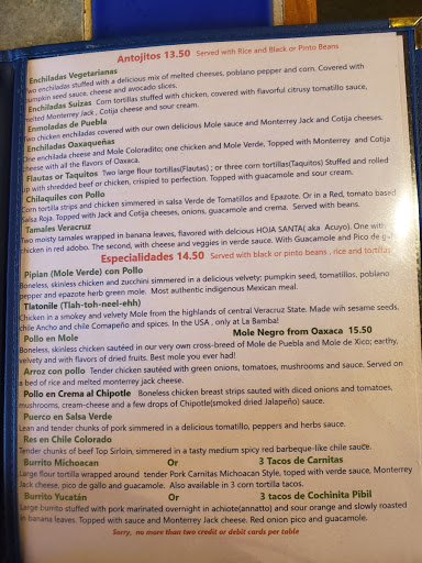 Exceptionally good mole. This is one of the best Mexican restaurants in the Portland area. Comparable but less expensive than La Calaca Comelona on SE Belmont. This is Authentic mexican food, gringo. Their moles are as flavorful as anything that youll find in Portland. We keep going back and one of us always orders Pollo con Mole - delicious! The Cadillac Margaritas are great, too! If you are expecting Tex-Mex or American Mexican, this probably isnt for you, there is a Taco Time across the street for you..