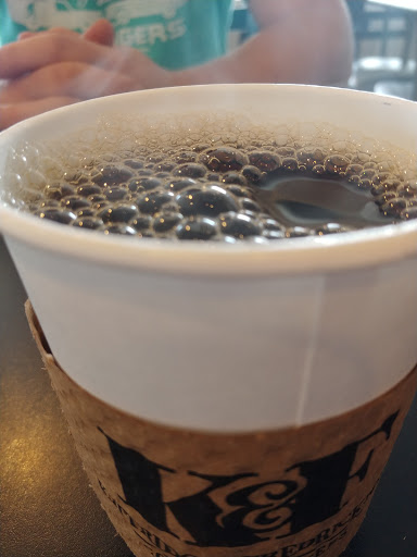 Not too impressive in the coffee department. The shots are poorly pulled (very bitter), they foam the milk in about 20 seconds; Ive gotten my drink before Ive even had the chance to pay for it! I once overheard the baristas talking about how their friend who works at Starbucks has to throw out shots that have been sitting out for 60 seconds. They were incredulous that this was a policy, and had no idea that shots go completely bitter when they sit out for too long. I havent tried the drip coffee, but I do not recognize the roasters. On the GOOD side: the baristas are friendly, they dont mind when I bring children and craft projects in there (I mentor some kids and take them there). They only charge 50c for tea! They have for-here mugs (but not for cold drinks, unfortunately). Their pastries look pretty decent, but I havent tried them.