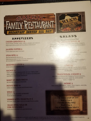 I am from out of state and have ate at Sandys at least 5 times but the last time I had the club sandwich the first piece was grate the second peace had a piece had a piece of cut off tooth pick in is about 1/2 inch long not a big deal pull it out and finish the rest wright wrong. Before I eat any more I though I better look in the other pieces and sure enough there was another piece of tooth pick in that pice also. So I though maybe they just broke off from the tooth picks that where holding the sandwich together so I pulled out all the tooth picks on my plate and every one of them still had the points on them. So 2 pieces of cut off tooth picks in one sandwich. I am so glad that my son was not eating that sandwich or anyone elses kids. This is the first review I ever wrote. I just cant believe what happened at this place. Beware of eating there and if you do for the love of GOD please check your kids food befor they dig in. Good luck. I will never return.