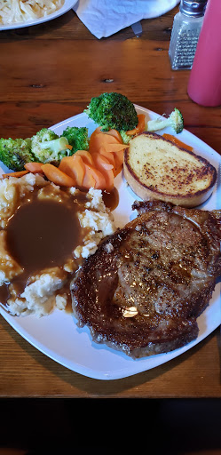 The restaurant appears to be fairly antique. The inside is has a very nice antique Western wood-built appearance with a T.V. and very high ceiling. Walls have photos of Mount Hood hanging on them. The interior is very dimly lit; it is almost too dark, in fact. Two of my friends and I ordered from a dinner menu. Though, there was only two other groups present inside the restaurant while we were there, it took a fairly long time for our orders to arrive. The service was decent, but all three of us unanimously agreed that the food was not that great. Definitely edible, but we all have had significantly better meals at restaurants such as the Village Inn and Black Bear Diner...
