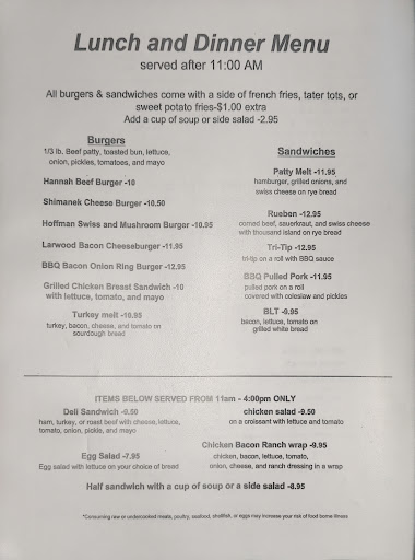 We stopped in to have quick bite on a road trip day. Looked very quaint on the outside, but, the inside looks more like a cafeteria. We got our menus, the server was nice enough, we looked at the menu, and WOW, those prices are high. For a small town in a rural area, they have 5 star pricing. We got our food, which was good, but not that good, to pay those prices, especially on a lunch menu. I dont foresee us going back to that place.