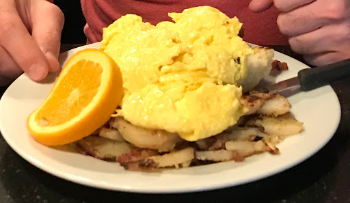Great food! We had the Turkey Sausage Pesto Scramble (it was given a Wow) and the Cajun Skillet (daily special). The scramble had pine nuts in the pesto - the skillet had spicy sausage and shrimp and 2 medium eggs. Tasty. Red potatoes with both dishes - amazing dishes. The in house fresh made biscuits (made with butter and whole buttermilk) were so good, we ordered 2 more to go. Make this part of your "must do" list for Seaside. A great way to end our 3 week stay!
