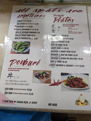 Teriyaki chicken was good. Ordered tempura shrimp sushi. Disappointed. Almost all rice with tiny piece of avocado and when smaller piece of shrimp.