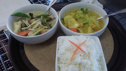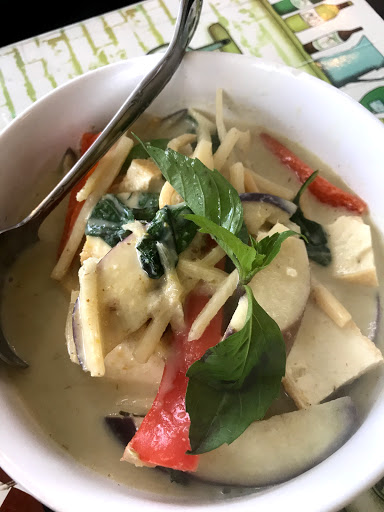 Enjoyed the Chicken Massaman curry. Staying at a nearby hotel and found the restaurant on a walk. Quality is good with plenty of meat, potato, onions and carrots and a very tasty sweet and sour curry sauce. Spooned it all down.