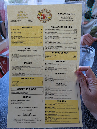 Had a great dinner at Yellow Curry tonight. I had the green chili with rice noodles, my husband had garlic supreme with chicken. Both dinners excellent. Friendly and good service