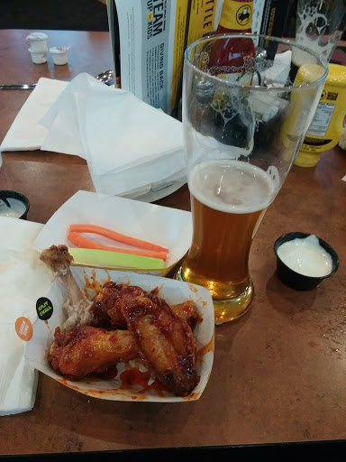 The staff has always been extremely attentive and positive when I dine-in here. The wings are pricey for how many you get but overall theyre satisfying. If your wings come drier than youd like you can ask for them to get re-spun in the sauce which Ive only had to do once. The happy hour is a decent mark down and there seem to be screens covering every inch of the wall for full coverage of almost every game currently on. Ive had constant trouble getting a to-go order correct when dining-out. Never once have I had a correct order for to-go. It wasnt bad food just the wrong order. So if you decide on wings I recommend dining-in.