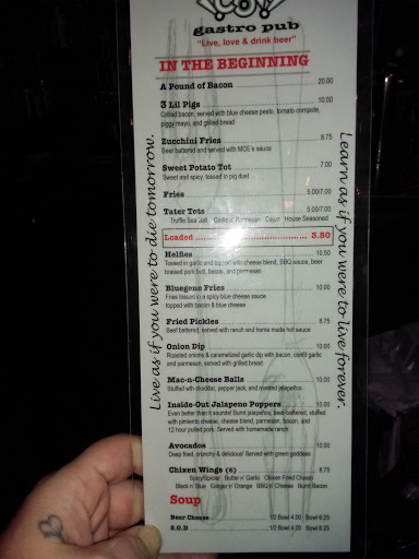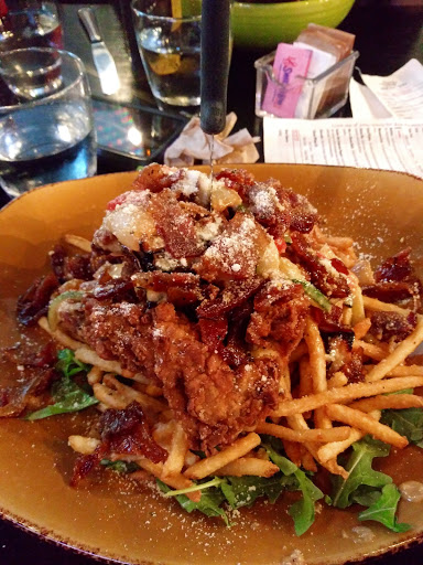 Amazing food- esp. the brown sugar crusted bacon, piggy mayo, and my GOD the sandwiches. The club is to die for! Salmon fish n chips. Prime rib salad. Great pastas. Dont let me give it all away though. Try this place for yourself. A new local favorite. Definitely a regular spot for me and my friends. Live music too!