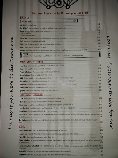 Ambitious menu, friendly & attentive service, but the food just wasnt enjoyable. Arugula side salad was okay, but it seemed to have a spicy marinara added in the middle, which, while it wasnt bad, wasnt particularly enjoyable either. I was excited to try one of the fancy grilled cheese sandwiches, and I picked The Melt, which is described as: "Brown sugar crusted bacon, sun-dried tomato pesto, stuffed with tomato compote, and melted cheese" with parmesan crusted bread. Ambitious and interesting-sounding, right? Unfortunately it was extremely sweet and off-putting. The bacon, pesto, & compote seemed like they had all been mixed together in a slow cooker for a long time and were just piled inside the bread, overpowering everything else. Some of the bacon was undercooked and the rest of it was black and overcooked. I ended up scraping off as much of this mix as I could (which was a TON, just way too much) but it didnt help. One thing a grilled cheese should taste like is cheesy, and this didnt. The parm crusting of the bread, again a cool idea, in practice sort of reminded me of crispy French toast, somehow also too sweet. Ditch the compote, use a thin layer of the pesto, lay a couple of pieces of properly cooked crispy bacon on lots of melty cheese, and perfect the parm crusting on a delicate bread, and youd probably have something.