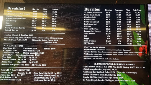 Burritos are great along with all other items on menu. Always quick and great service - plus they have a full coffee bar to go with it. Sauces are amazing.