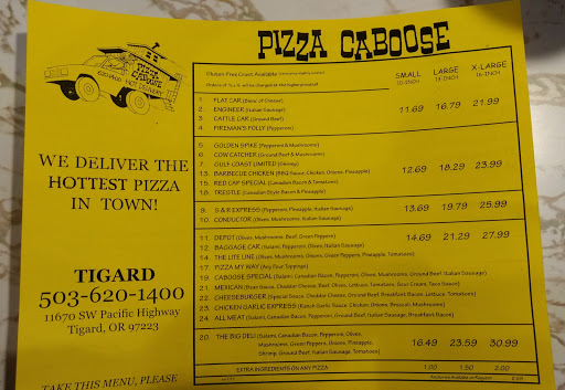 Pizza Caboose is the best pizza in the area if you like pizza! They have 2 glorious locations. One in Tigard (original store since 1971) and one in Rock Creek (Somerset West). The Rock Creek location also serves fried chicken. They both serve legendary potato spikes. ;) I grew up near the Rock Creek location. I have been going there since I was 8 (around 1981). I actually thought all pizza places were this good back when my world was smaller. Low and behold I found out I was spoiled by the best pizza in the area. Other places just cannot compare. The staff is really nice and helpful and you can tell they actually want to work there. They have special trucks for delivery which are designed to keep the pizzas as warm as fresh as possible.