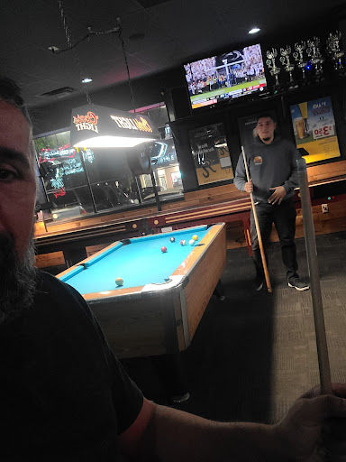 Lots of pool tables, friendly staff. It is your usual sports bar so to speak. We go for untelevised sports games, if you get there early on football Sundays you can have your game on 1 of 3 big screens, otherwise you can watch on smaller TV. We used to covet their breakfast specials (cheaper before 11am I think it is) but inconsistancy in quality ended up turning us off. They have a "burger and a brew" on Thursdays for 6-7 bucks tho, big burger and fried and pint..that is a winner. Taco Tuesdays suck, go to the Stagecoach for those ;o)