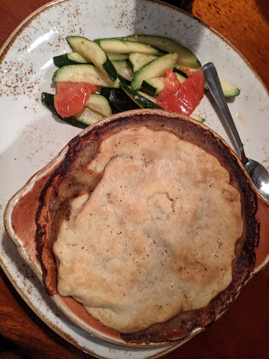 A good solid local restaurant. We were here for dinner and lunch the next day. Dinner was great, with live music, good service, and solid food. The atmosphere is warm and friendly, and the music makes it lively and ties it all together. We had their bacon wrapped scallops for appetizer, and they were the best scallops weve had in a while. The halibut, topped with Dungeoness crab meat, was perfectly cooked; the seafood stew, albeit a little smaller than expected in portion, was also delicious. A pear hard cider and a Marionberry daiquiri rounds out the night. For lunch, we had the seafood lasagna, crab meat quesadilla, and razor clams. All very yummy, and worth the trip back. We also had the "only on tap" Spruce Tip Ale by local Wolf Tree Brewery - a delightful beer that was refreshing and flavorful... Like drinking a tree in a glass!