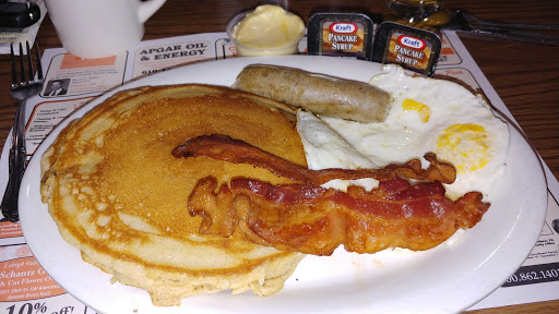 Bang for the Buck! This place is a deal. The service is always good and the staff very friendly. It is totally outdated in style and looks like a dump from the outside but something about it is relaxing once inside. They have good breakfast food. The bar is not smoky and trashy like so many places I hate. The drinks are a good price and wings are good too.