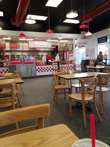 Firstly, the google map location is wrong! This is located on Airport Road South right off Route 22. Its in the shopping area with target, ross and the verizon store (right hand side when driving south on airport drive coming off 22). Went here for my first Five Guys Burger experience. Was very pleased, my order took less then 10 minutes right around the start of peak rush (4:45pm). When you place the order, the cashier calls out the order and everyone in the kitchen yells "Got It!" which was very funny the first time I heard it. Their burgers and fries are the best fast food Ive had so far. When I order regular fries they but always give me 2 cup fulls into 1 cup so it spills all over the bag (gives the bag a nice greasy stained look). Only bad thing I can say is that they place your fries in an non-eco friendly styrofoam cup. Price for double patties range from $4-$6 regular size fries are around $2.59