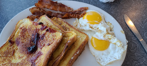 This place seemed to get a good rating so my hubby and I decided to try it this morning for breakfast, we would have been better off going to the McDonalds across the street! We sat down and some young girl came to take our drink order, she brought them over quickly and then left. An older lady came over and took our food order. I ordered the 2 piece french toast, a scrambled egg, bacon, home fries and toast, my hubby ordered some kind of scramble with potatoes, green peppers, ham, and onions. While waiting for our food the waitress who took our order came over to our table, reached across it and then said "excuse me" while grabbing the syrup! WTF!! I almost got up and left, but for some reason I stayed! Our food came out not long after, it didnt look too appealing, but we dug in anyway. OMG! I dont think Ive ever had such a horribly bland meal! French toast is generally made with an egg mixture and a whole lot of cinnamon, this stuff they put in front of me was bread dipped in eggs and cooked, no flavor whatsoever, the syrup didnt even help it out! After managing to swallow a few bites of that I moved on to the plate with the eggs, bacon and home fries. I tried a small piece of the bacon and threw the rest on the plate with the pieces of french toast I didnt eat, store brand bacon tastes better than that stuff they served! I proceeded to add salt and pepper to my eggs and potatoes. I put ketchup on like I always do and mixed. I took a bite, the eggs were rubbery and even with the salt, pepper and ketchup it was flavorless! I added more salt and pepper took another bite and when that still tasted like crap I simply stopped eating. My hubby said his scramble was barely half way decent, he hardly ate anything from his plate. We received our check, had no clue what we owed because there was no total on it, took it up to the cashier to pay, the waitress then came up and said "did you not like the food?" I flat out told her it was the worst meal Ive ever had! My hubby told her that we were not impressed. She then took our check and crossed out most of the stuff so we ended up only paying $4 for breakfast, we appreciated it, not that this place was expensive, my french toast was around $3, the plate with eggs, bacon and potatoes around $4 and my hubbys plate around $5 plus a glass of OJ for around $1 or so, so over all we werent going to have spent a lot, but I still liked that they discounted our meal, Im sure in hopes that wed return and give them another chance. Now I know people are probably gonna say that for those prices you cant expect much, but even at those prices and as busy as this place was and the fact that its on a main street, I would think the food would be a lot better. Ive lived in PA now for almost 2 months, have tried quite a few diners and none of them have had that WOW factor making me want to return! Maybe its because Im from CA and Im use to food with flavor, but Im about to give up hope that Ill ever find a decent diner to go to! The best place weve been to so far for breakfast has been the Blue Sky Cafe, it was excellent, just the way a breakfast should be done! I will not be returning to Golden Gate Diner ever again!!! I wouldnt even recommend this place for a poor college kid!!!