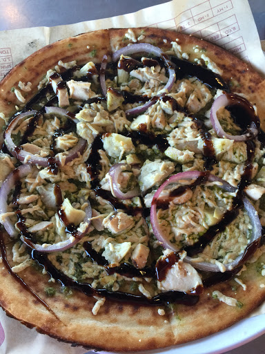 Went with friends for the first time. Quick explanation from the girl in the front on how everything worked, the line moved quick too. Great options for someone who is vegetarian and or watching their weight. The caesar salad was really good but I regret not adding chicken onto it. My BBQ chicken pizza was good and I look forward to trying maybe a more traditional pizza here next time. There isnt much room for people waiting and they seemed to all get in each others way when waiting for their pie or when they were getting it. Might be a good idea for some sort of loud speaker to call people up instead of having them shamble around.