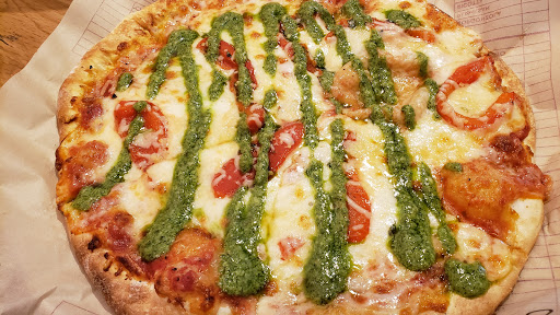 This is easily my new favorite pizza place, thin crust pizzas with a ton of toppings. You dont pay extra for any of the toppings or sauces. It is also very quick considering they are making your pizza right there in a large brick oven. Try out the tea and lemonades they have as well.