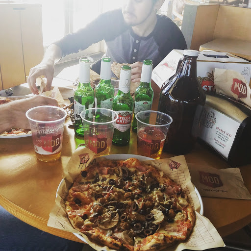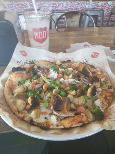 Had an amazing time while picking out my toppings the crew was very caring as too what I wanted on my pizza gave great suggestions and the whole atmosphere at MOD was just great the blonde at the beginning was very educated on the company and everyone there just seems to be having a great time and the one with purple hair was very polite and suggested I had garlic cloves and it was very delicious I can not wait to go back with my family (: Very Nice place. The process is a little bit confusing I must say but once you take a bite of your pizza its all worth ig