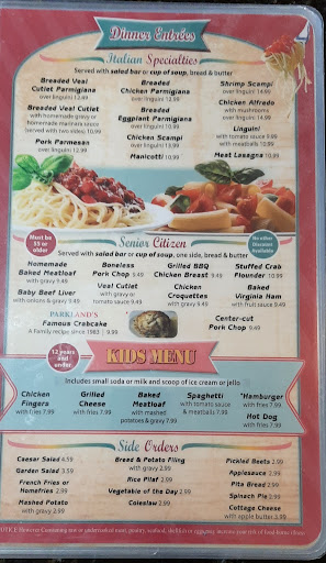 Ok portion to eat on senior menu but my pork chop was overcooked Dessert not needed. Soup was warm bland had split pea. Had to wait to long to get bill.