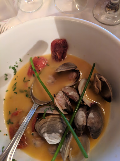 Somewhat pricey, but the portion sizes are very fair and will guarantee you dont leave hungry. The bread they gave was good. There was a nuttier bread that I thought was too dry at first, but then realized it left such a wonderful aftertaste and that I had not yet understood its amazing understated flavor. The seafood Boulleboulaise (forget the spelling) was good. The seafood broth was not at all salty. The grilled shrimp was also decent, with very yummy tomatoes and cannoli beans (is that the right word?). (Seriously, the tomatoes were amazingly flavorful.) The stunner was the special dessert that day, a wonderful, refreshing mixed berry tart with raspberry mousse and a dollop of vanilla ice cream. Any negatives? I was a bit disappointed that when I pointed out that one of the clams in the seafood broth did not open, I did not receive anything special or get a discount, though the server did say sorry. Overall, a more than decent dinner, and I dont feel like I really overpaid. The quality was certainly there. The wait time was also reasonable. Do make a reservation if you want to go!