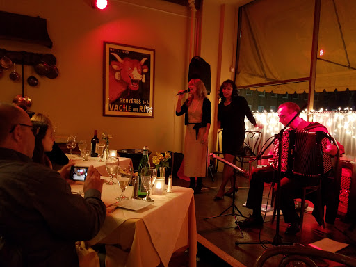 This has been a favorite for some time, and friends and I looked forward to a nice evening catching up after nor seeing each other for some time. Unfortunately, unbeknownst to us, there was to be "live" entertainment: we were "treated" to a middle-aged a capella group (at least twelve members strong) trying to revive their Whiffenpoof-wannabe glory days by serenading unsuspecting diners with truly dreadful music. At least two members of our party have had children involved in a capella groups in high schools and in their Ivy League institutions; so we are not on principle adverse to the genre, but it was pathetic to see these old guys singing just barely in tune to a captive audience. While we were expecting an evening of convivial conversation, we were instead shushed when we tried to converse just above the horrible singing. When we registered -- politely-- our objections, the waitress became hostile and advised us that the "live" entertainment had been advertised for some time. However, when we had made a reservation by phone, no mention was made that we would be subjected to mediocre harmonizing as part of our dining "experience." I would love to comment on the food, but frankly, all I remember was the uncomfortable feeling that we had inadvertently wandered into a private private party for Elis who never grew up.