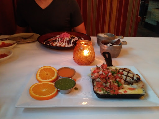 Start with fresh guacamole made tableside and delicious house margaritas. Enchiladas carnitas, the mole sauce has a bite! Everything so fresh No room for dessert! Lovely inviting atmosphere and patio tables too