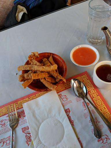 Ok, so my boyfriend and I went here since we were in the area. We read the reviews before going and they all were good comments except for one stating that his soup was gel like which made him sick. Anyway, the silverware werent clean. I ordered a chicken and broccoli w/ white rice. My boyfriend ordered the general tos chicken w/ white rice (the sauce was an abnormal bright redish color and the sauce was also thick and gel like for it to be general tos chicken). It was also too chewy. The food was edible (not the best Chinese American food Ive had), but OK. I noticed a little piece of hair thinking it could have been chicken hair that wasnt properly cleaned off. I kept telling my boyfriend there was hair in my chicken. He kept telling me, "Its the chickens hair babe, its ok". But it WASNT! IT WAS HUMAN HAIR!!! I pulled the hair out of the chicken and it was at least an inch. Disgusting. I didnt have to pay for my order but my boyfriend had to pay for his which pissed me off even more. I would NEVER go back. I would NEVER recommend this place. 0 stars for me if they allowed me to.